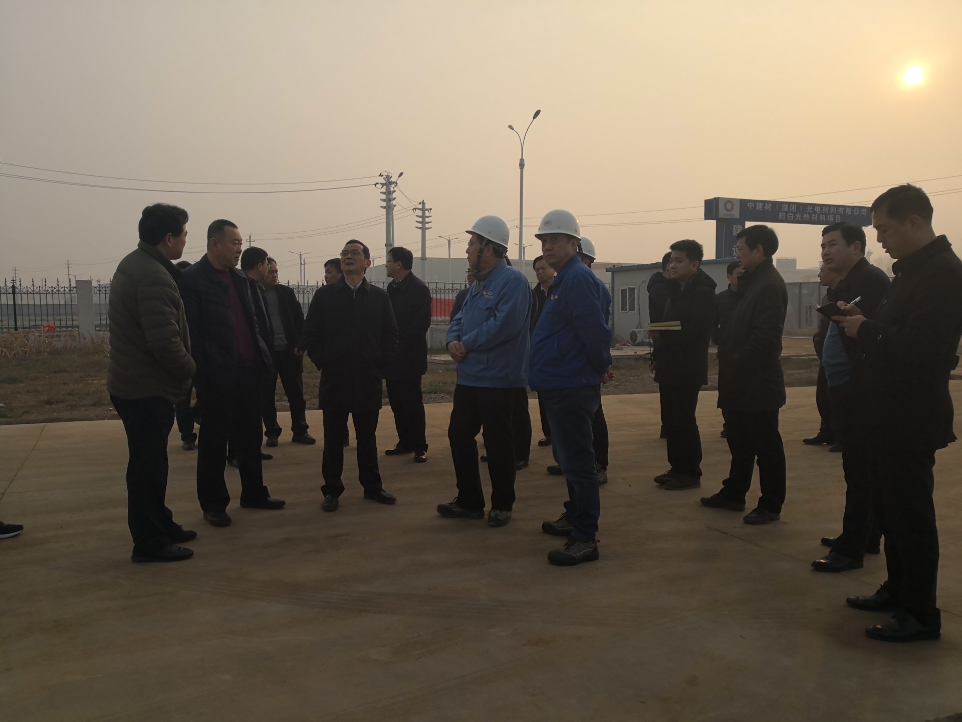 Puyang County Mayor Sun Qingwei led leaders from various county committees and bureaus to investigate the construction of the ultra white thermal material project at China National Building Materials (Puyang) Optoelectronic Materials Co., Ltd